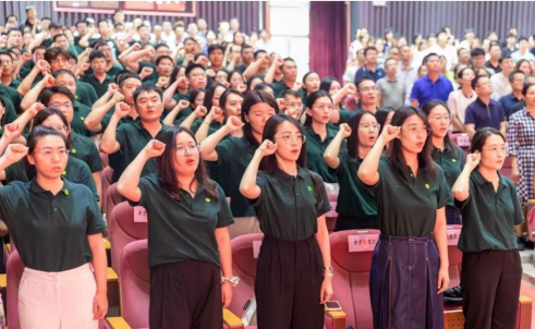 9月9日下午,学校举行庆祝第41个教师节大会,并举行了教职工入职礼及宣誓仪式。在现场参会人员的见证下,124位新进教职工代表面向国旗,佩戴校徽,并在校党委副书记、校长马宏伟带领下宣誓,许下“为党育人、为国育才”的庄重承诺。