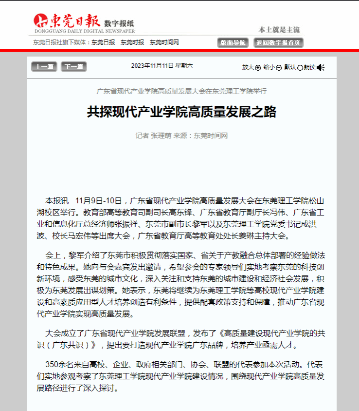 大会成立了广东省现代产业学院发展联盟,发布了《高质量建设现代产业学院的共识(广东共识)》,提出要打造现代产业学院广东品牌,培养产业亟需人才。