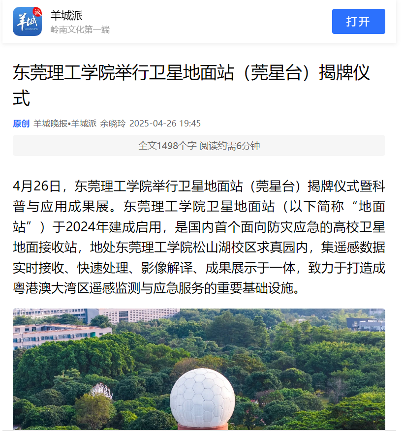 地面站自2024年底正式投入运行以来,已为地方政府、科研机构和企事业单位提供多项专业遥感服务。其中包括向东莞市气象局、水务局、应急管理局提供“台风-暴雨-洪涝”灾害监测与防御方案,开展精细化的气象预报服务等工作;联合粤港澳高校开展城市道路、建筑物及地表沉降分析等研究,推动“天空地”一体化的城市安全监测网络建设。同时,地面站与卫星测运控龙头企业航天驭星开展合作,实现商业卫星数据实时接收,大大提高监测时效性。