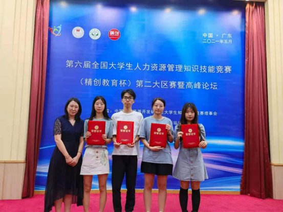 参赛团队成员为人力资源专业学生黄莹莹、韦思羽、黎泓阳、佘婧怡,指导老师为谷云燕、方妙英。在老师们的耐心指导下,队员们凭借良好的知识储备、默契灵活的配合与沉着冷静的心态一路披荆斩棘,在52支队伍中脱颖而出,勇夺大赛区赛综合奖一等奖与两个单项二等奖,展现了莞工学子拼搏进取的精神面貌与优秀的专业素养。