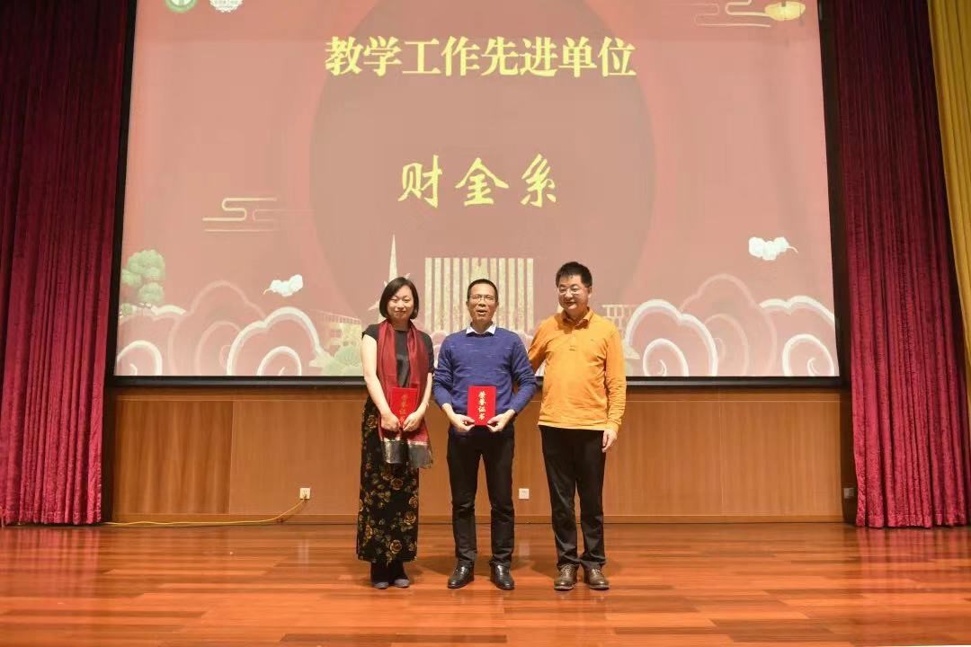茶话会过程中对优秀校友、创新创业工作先进个人、教学之星、科研之星、服务之星、教学及科研工作先进单位等进行了表彰,肯定了他们一年来的努力,同时对今年离开经管学院到校内其它职能部门任职的同事颁发了“经管一家人”奖杯。