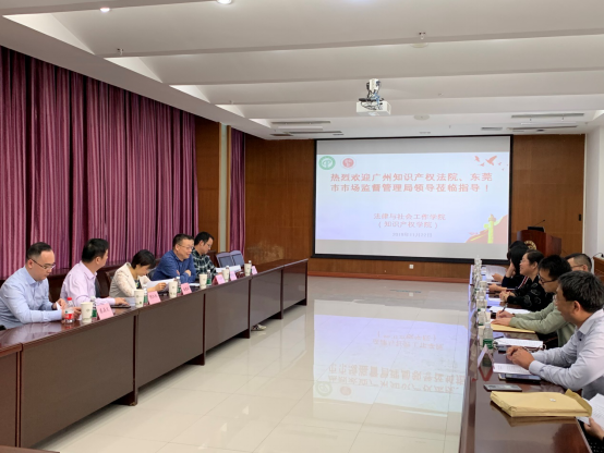 会上,法社学院还和一起来访的东莞市市场监督管理局保护科何建忠科长一行,就共同开展知识产权人才培养、培训及项目研究、知识产权纠纷调解委员会建设等事项进行了深入洽谈。