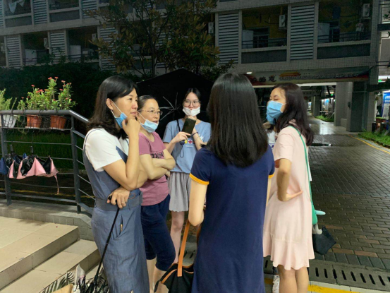 在学生宿舍区开展接送服务的教育学院(师范学院)的老师们